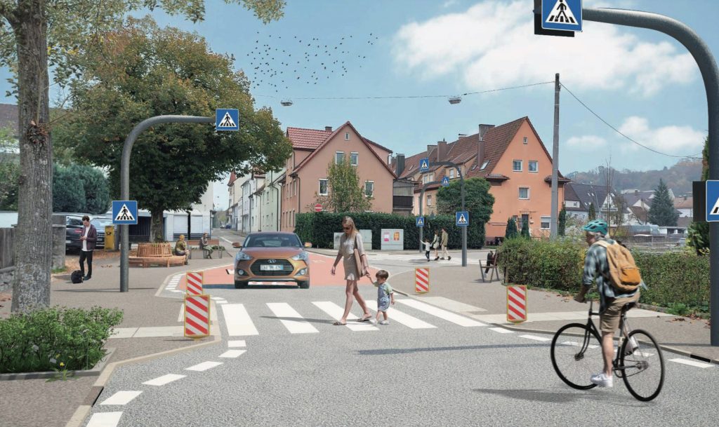 Zwei Zebrastreifen und durchgängige Fahrradstraße, verbreiterte Gehwege