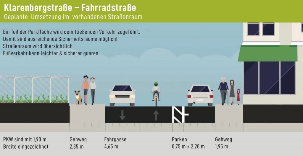 Die Klarenbergstraße ist damit die erste von drei Fahrrad Hauptrouten, die geschaffen werden muss, um sichere, attraktive und durchgängige Radinfrastruktur zu schaffen.