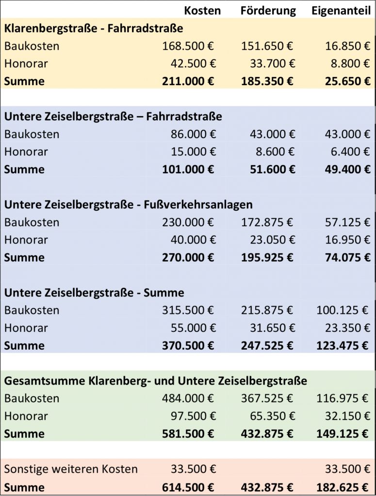 - Einrichtung durchgängiger Fahrradstraße von der Unteren Zeiselbergstraße bis zur Mozartstraße.